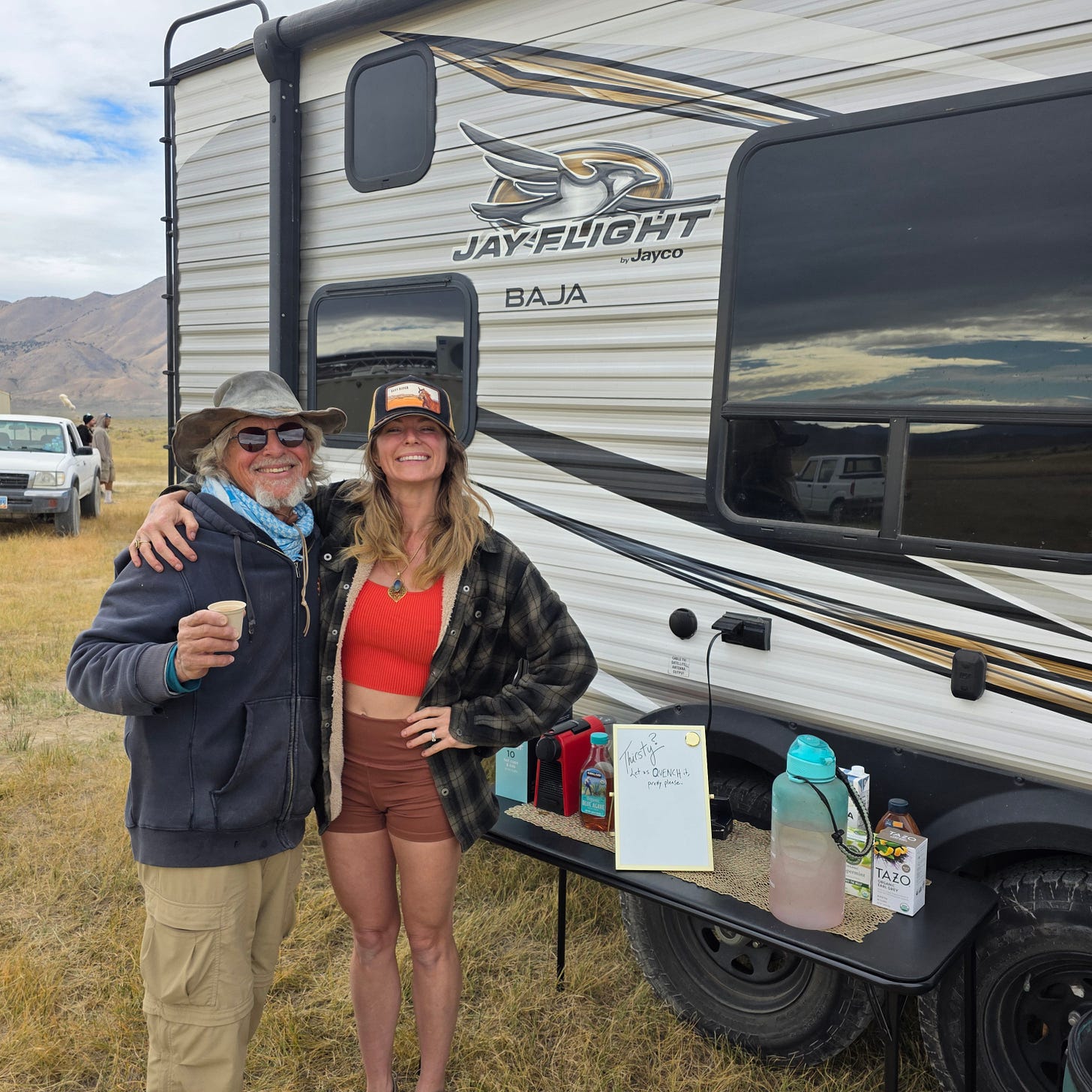 That morning, we set up a small coffee station. A folding table with compostable cups, an assortment of caffeinated options, and a handwritten sign that simply read Thirsty?